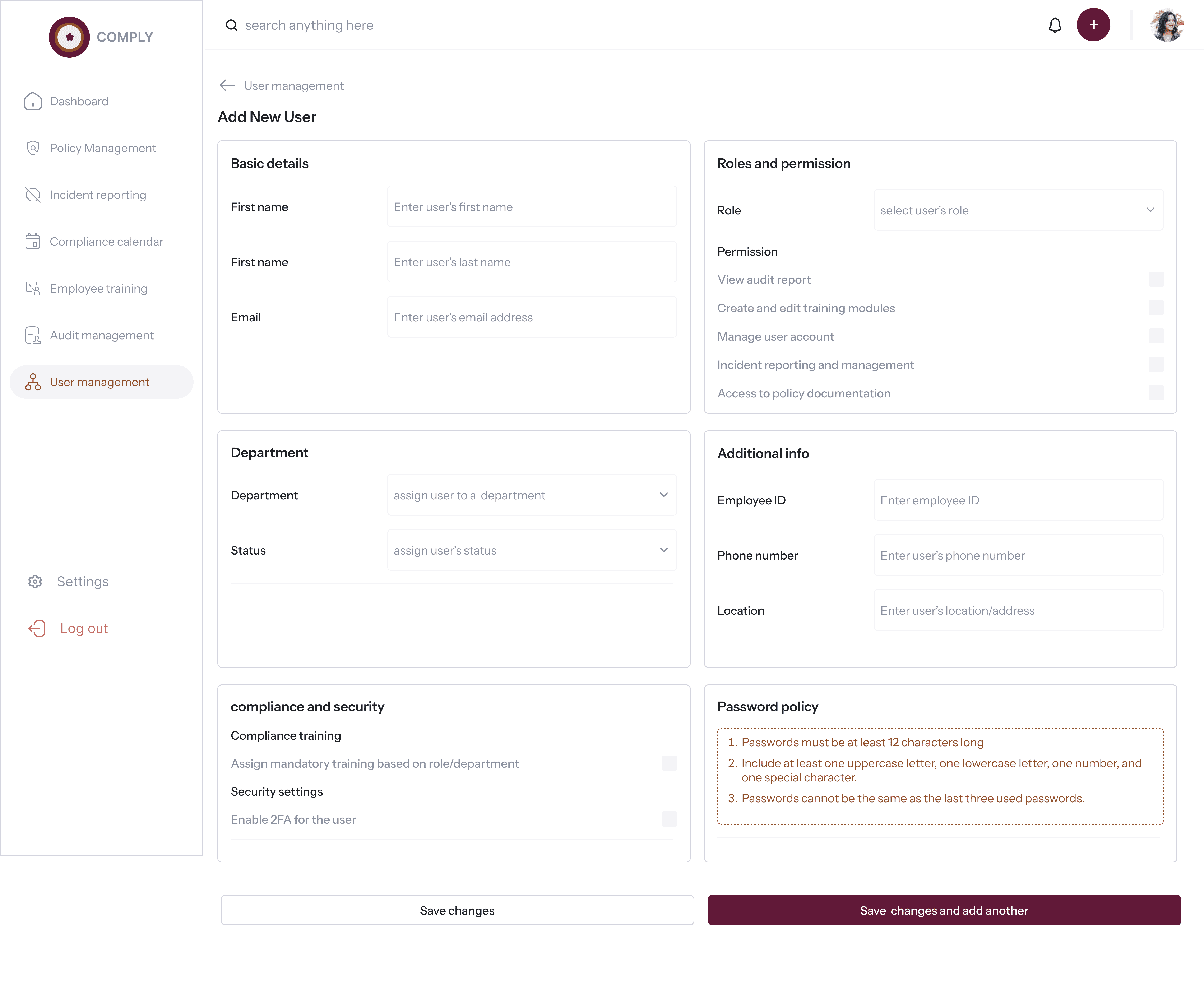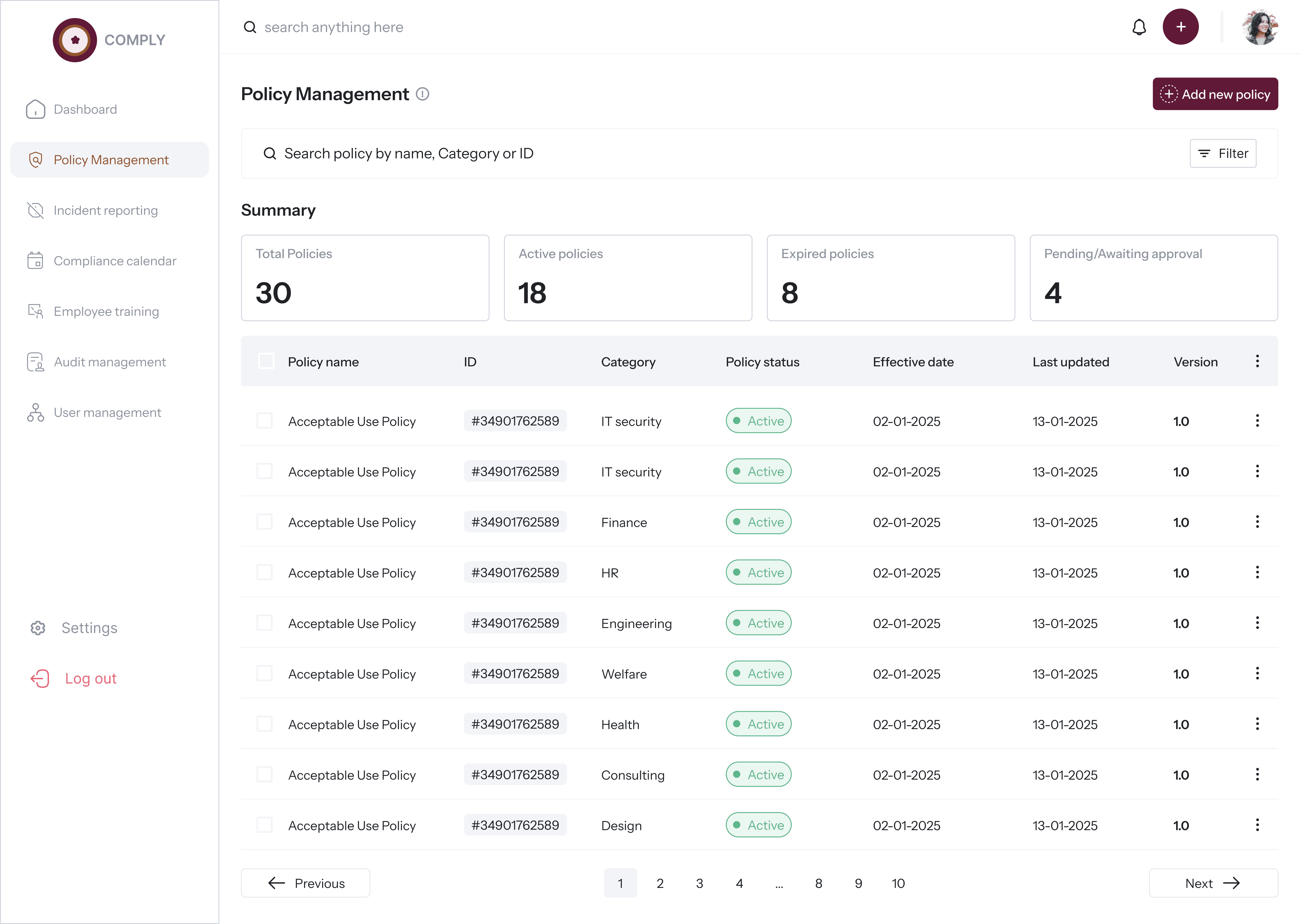I designed the admin view of comply. I played the role of enhancing the user interface and experience for compliance officers and making it easy for them to perform regulatory tasks.